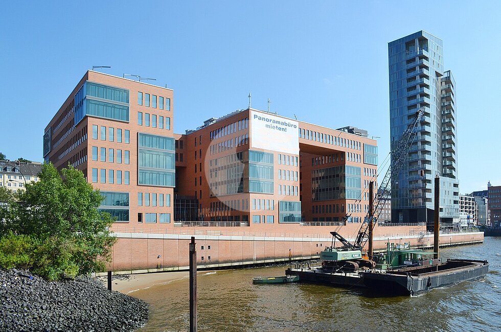 Der „Holzhafen West" ist ein imposantes Bürohaus in der ersten Reihe des Hamburger Elbufers an Hamburgs ältestem erhaltenen Hafenbecken.
