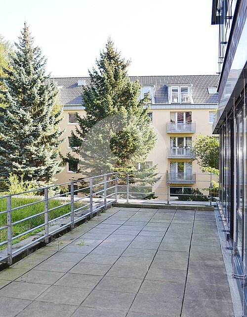 Große Terrassen und schöne Grünanlagen rund um die Bürohäuser ermöglichen eine tolle Arbeitsatmosphäre.