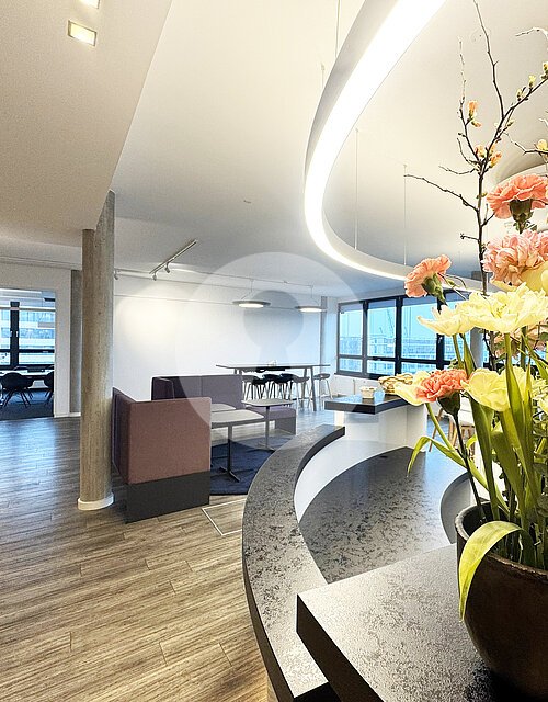 Über einen repräsentativen, barrierefreien Eingangsbereich mit zwei Personenaufzügen erschließen Sie die hellen Büros, die über eine angenehme lichte Raumhöhe von ca. 3 m verfügen.