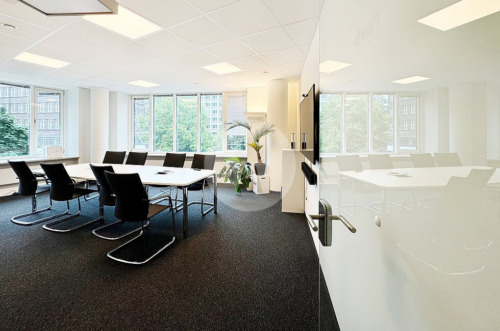- große Fensterfronten für helle Büros