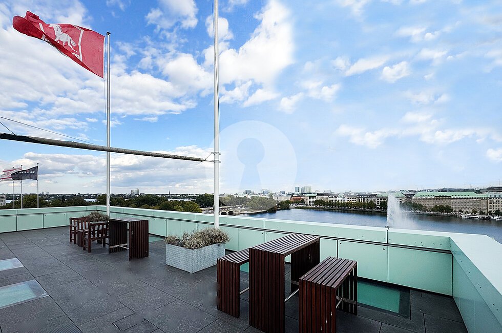 Und das BESTE: Sie dürfen eine der schönsten Dachterrassen Hamburgs mit einem unverbaubaren, spektakulären Alsterblick mit nutzen!