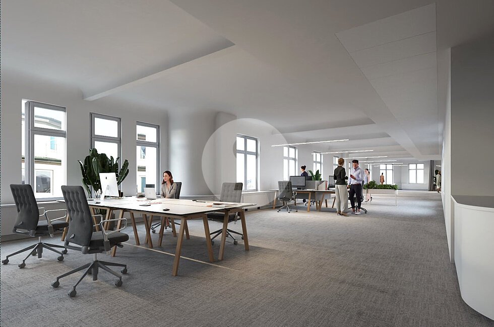 In Absprache mit den neuen Mietern erfolgt ein moderner Neuausbau der Büroflächen.