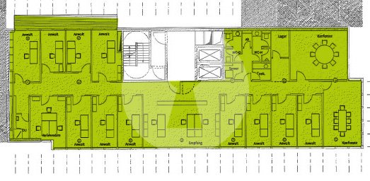 Ihre neue schöne Bürofläche mit einem Balkon zum Innenhof erschließen Sie über einen repräsentativen Eingangsbereich.