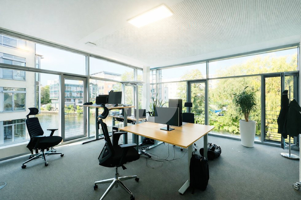 Die lichtdurchfluteten Büros werden in Absprache mit dem neuen Mieter neu ausgebaut übergeben. Bodentiefe Panoramafenster bieten Ihnen einen tollen Ausblick auf den Osterbekkanal und die angrenzenden Grünflächen.