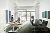 - teilweise Akustikelemente wie Akustikdecken bzw. Akustiksegel