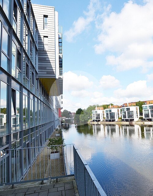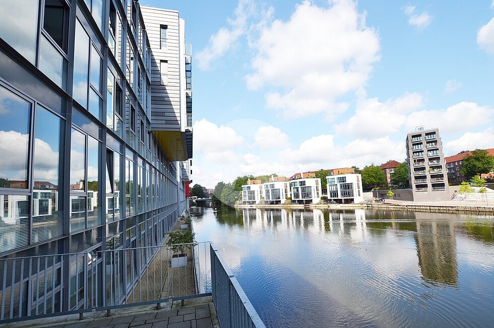 Die schöne Lage am Osterbekkanal vereint auf besondere Weise urbanes Leben mit inspirierender Arbeitsatmosphäre.