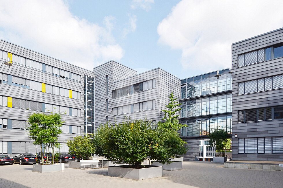PKW-Stellplätze stehen in der Tiefgarage und im Hofbereich zur Verfügung.