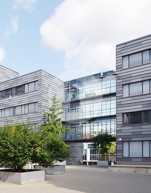 Dieses ansprechende Gebäudeensemble aus vier Gebäudeteilen wurde 2004 errichtet.