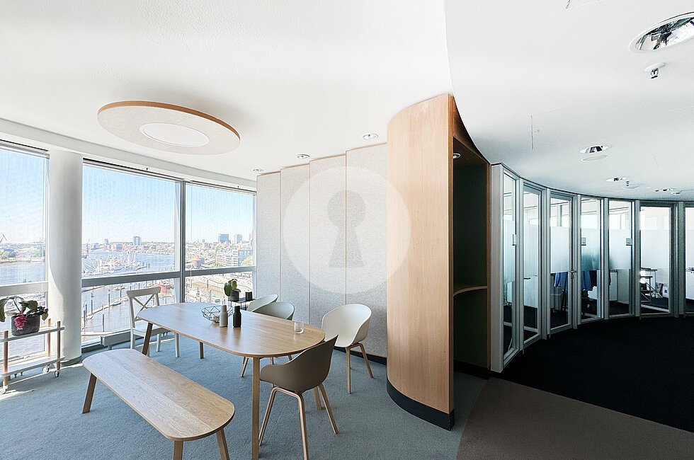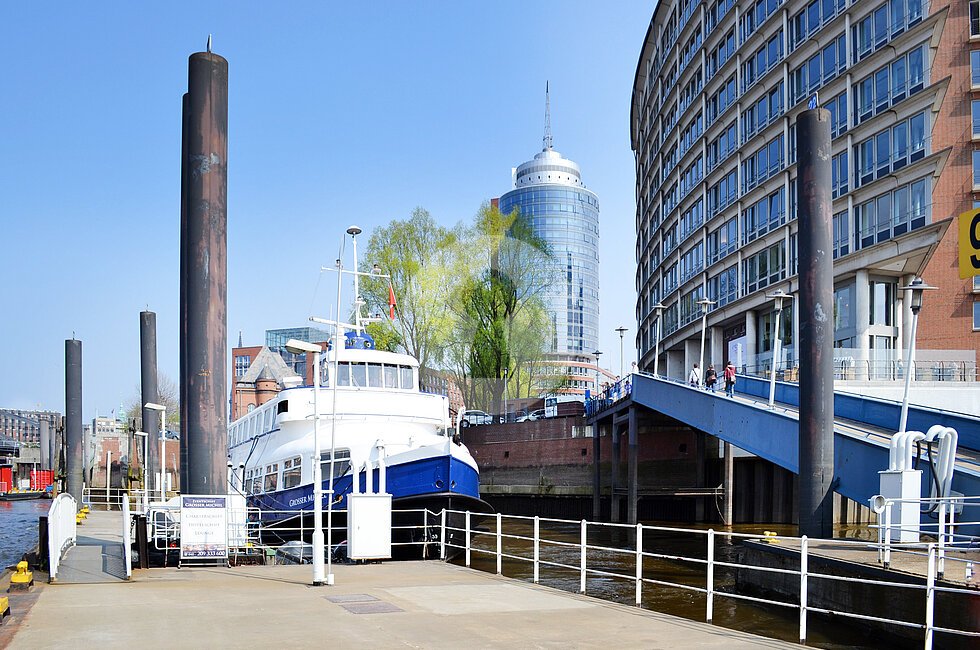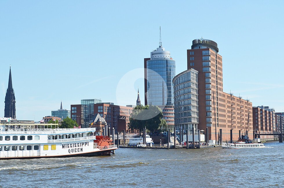 Das einzigartige „Columbus Haus” ist der markante Turm des namhaften Bürogebäudeensembles „Hanseatic-Trade-Center” und bietet sensationelle Blickachsen auf den Hamburger Hafen, die Elbe und die Elbphilharmonie.