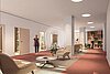 - teilweise Akustikelemente wie Akustikdecken bzw. Akustiksegel