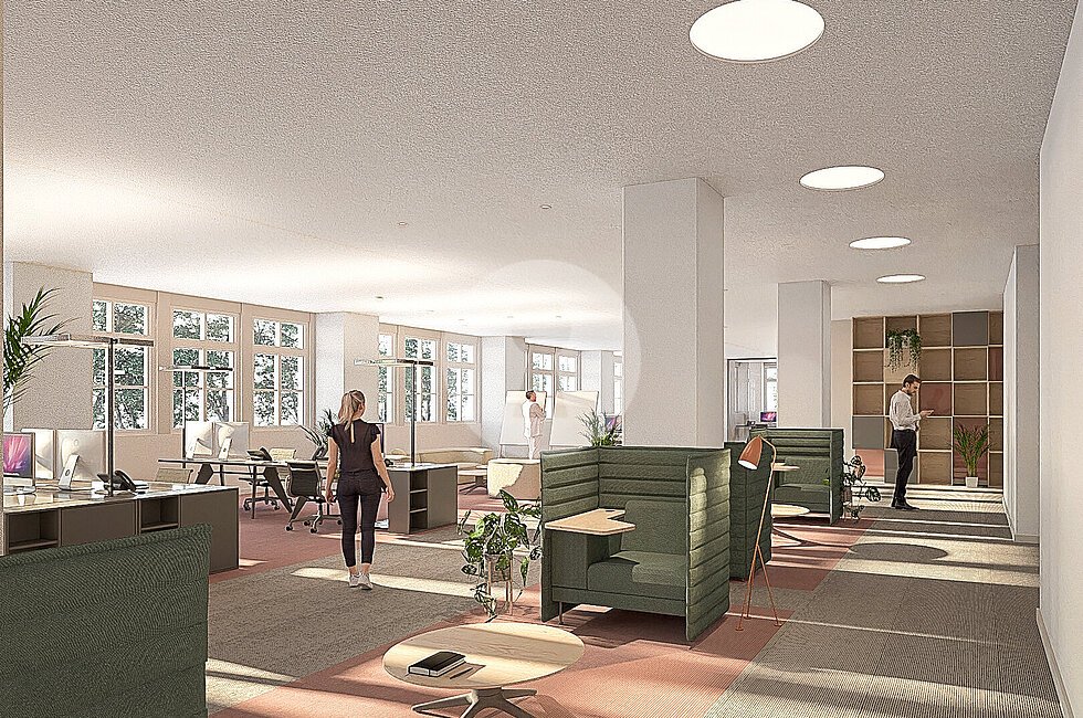 Viel Fläche auf der Ebene bietet Ihnen optimale Voraussetzungen für eine hohe Kommunikation und attraktive neue Bürokonzepte.